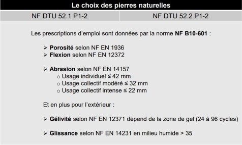 Résistance à la flexion : 8 à 11 MPa (NF EN 12372)