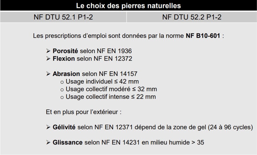 Résistance au cycle de gélivité = Aucun sinistre lié au gel en France sur pose faite selon normes D.T.U.