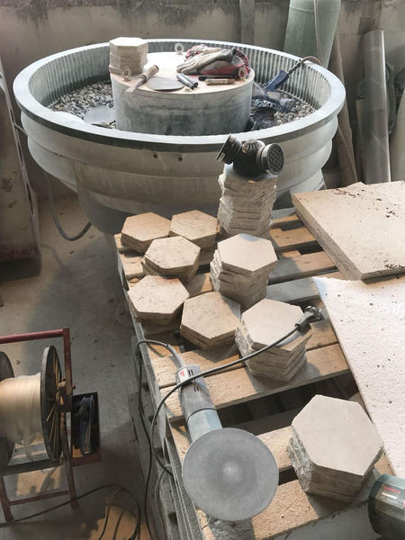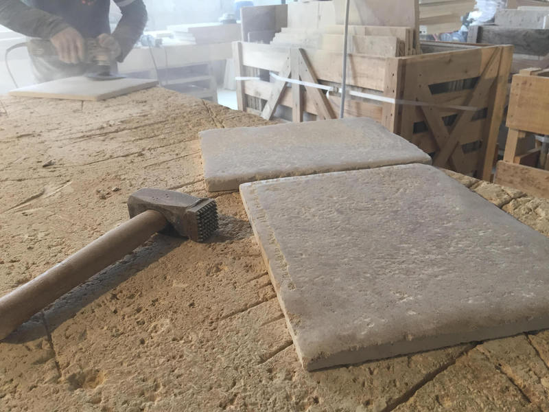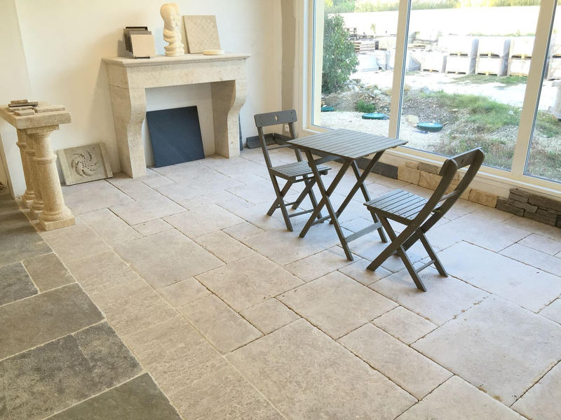 Nos dalles et dallages en pierres naturelles et pierre de Dordogne Périgord sont vieillis et patinés à la main et fabriqués à la demande dans nos ateliers.