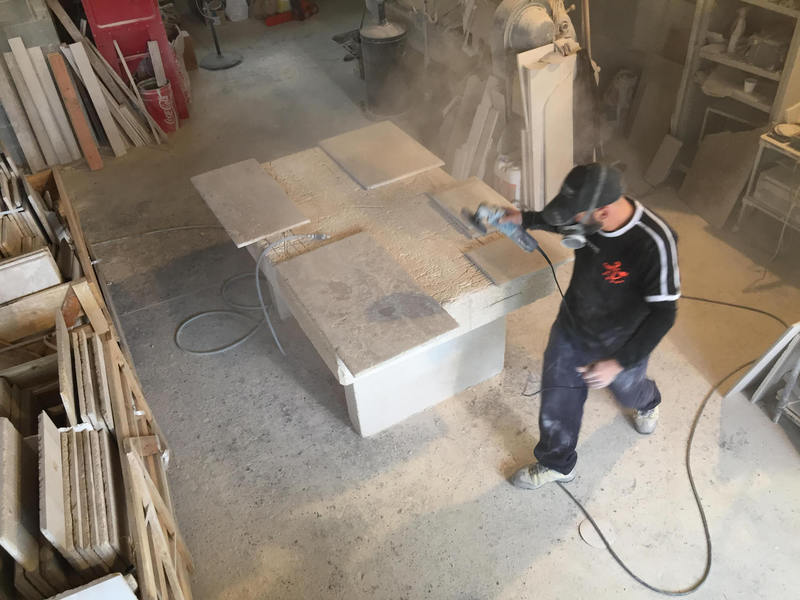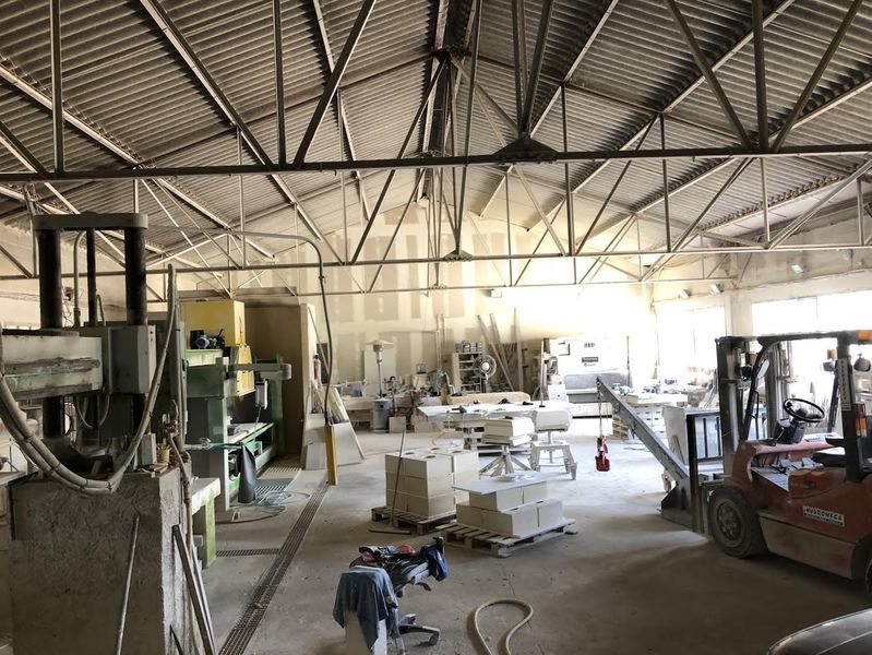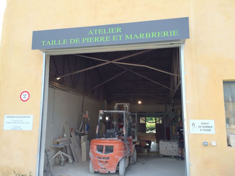 Atelier de taille de pierre de 250m² pour fabriquer dans les meilleures conditions, de manière artisanale et dans les règles de l'art.