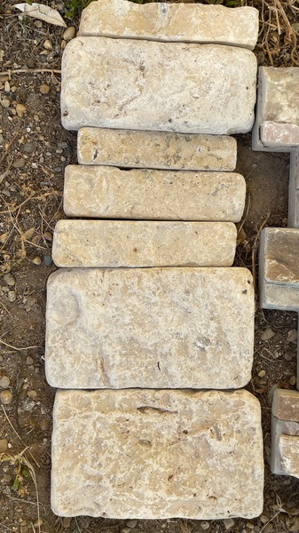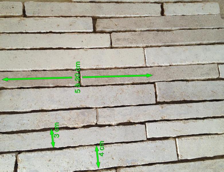 Format rectangulaire, Opus incertum, ou à ajuster à la pose pour un effet massif et porteur ou calepiné sur mesure.