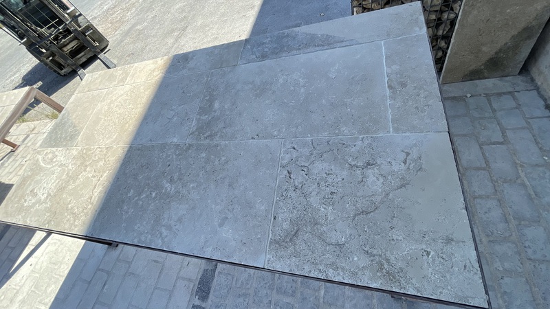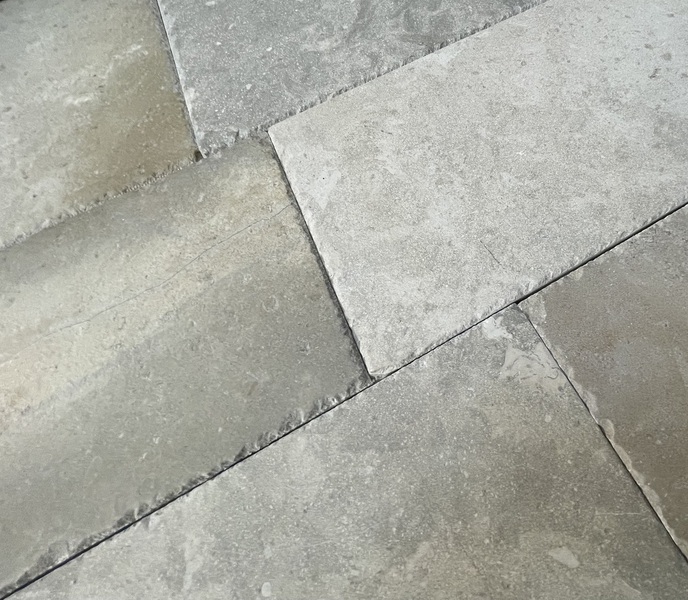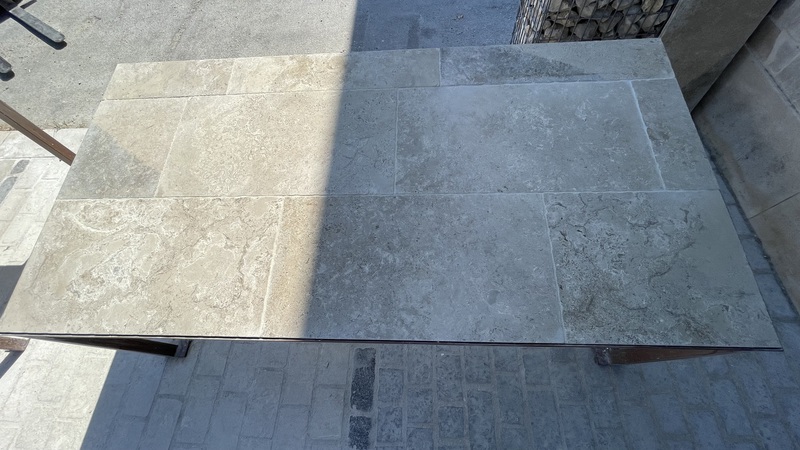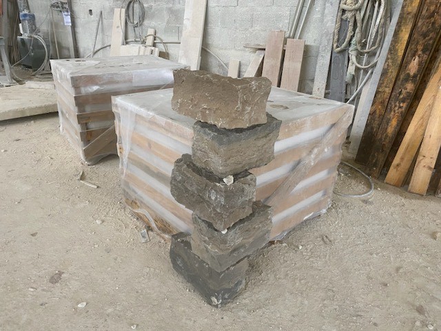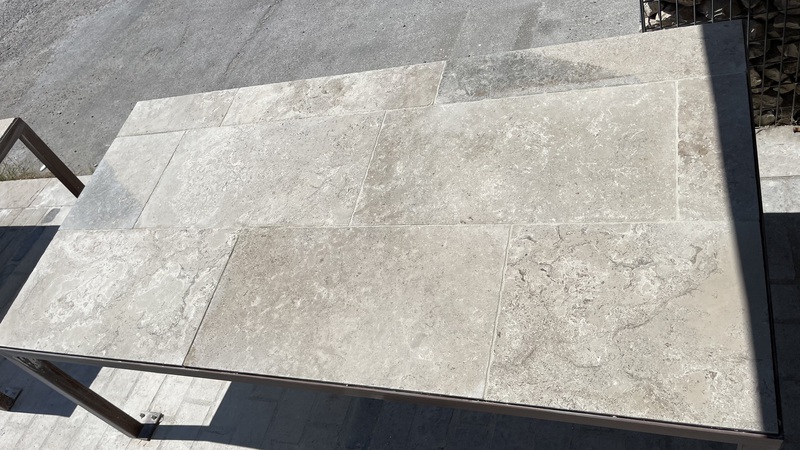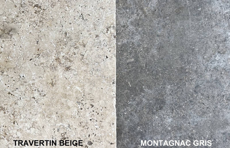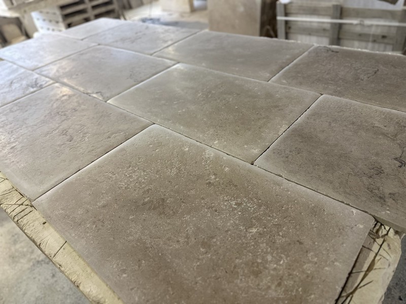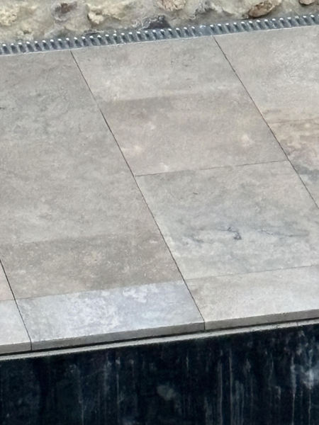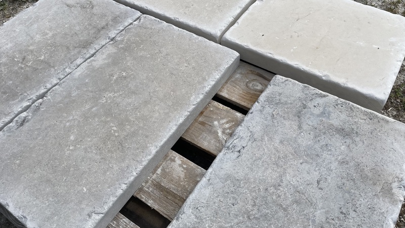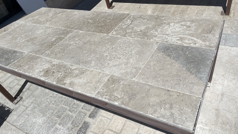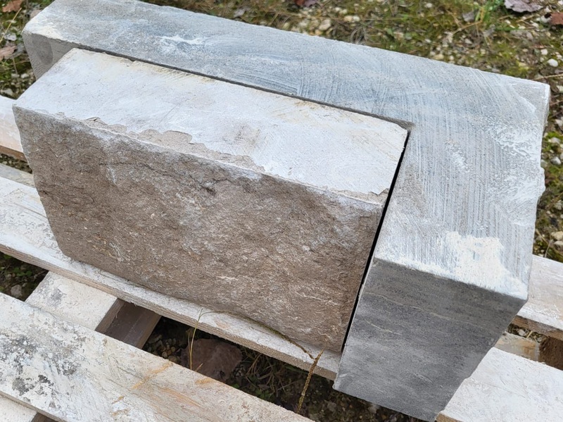 Chez Francepierre, la pierre de dordogne (Périgord B2 gris) se décline en ouvrages sur mesure : dallages intérieur/extérieur, margelles, pavés, parements, escaliers, plans de travail, éviers massifs, vasques, cheminées, tables, pieds de table, tombales, bar de Montpellier.