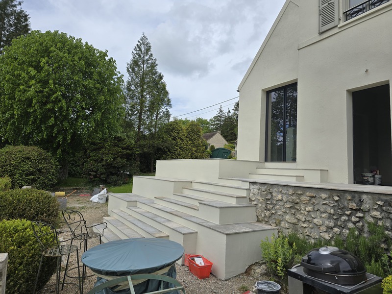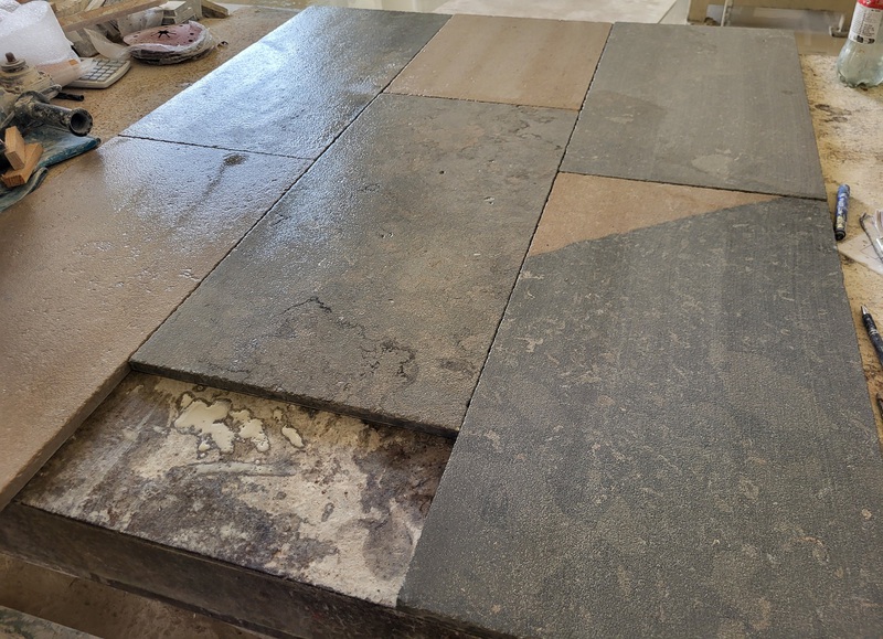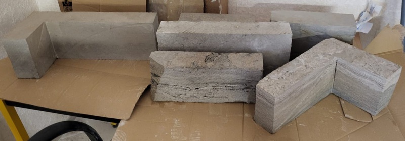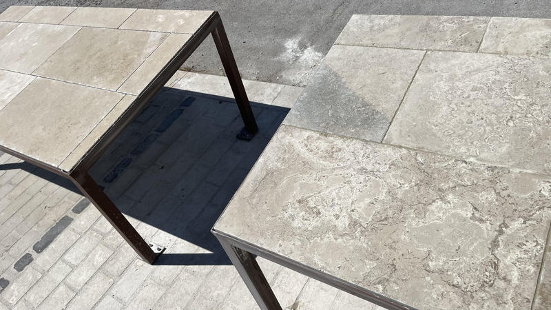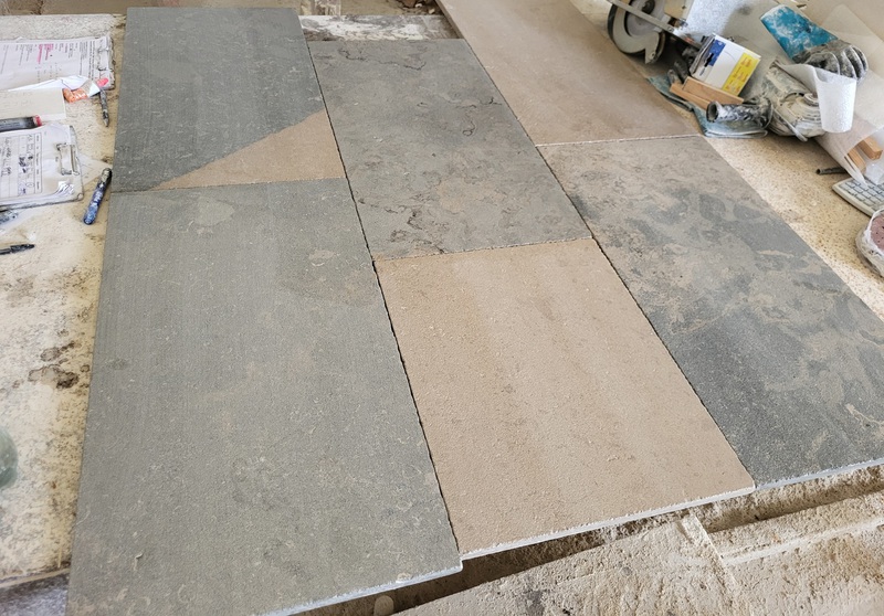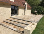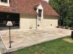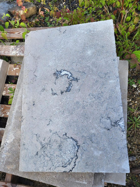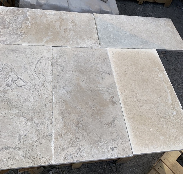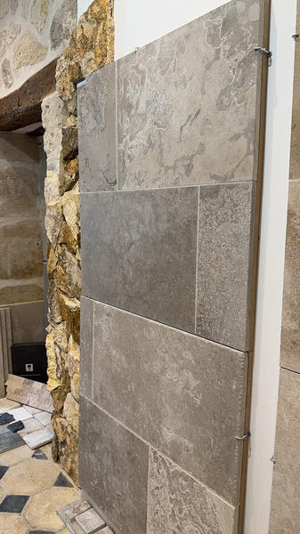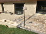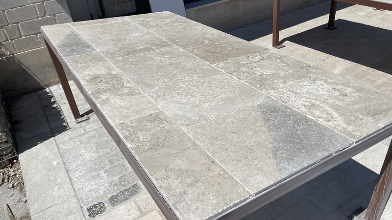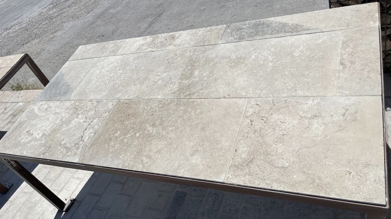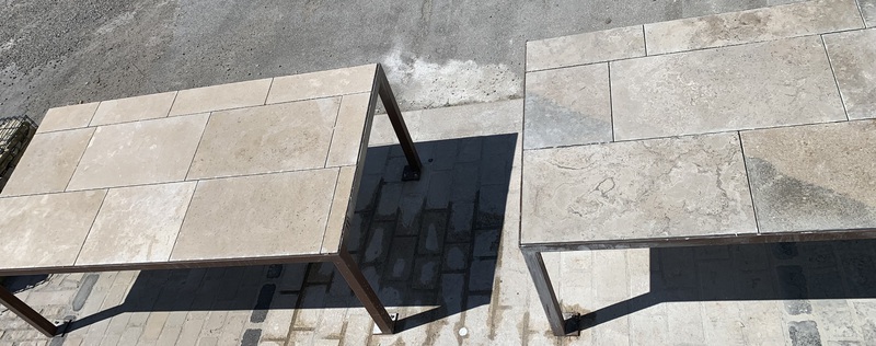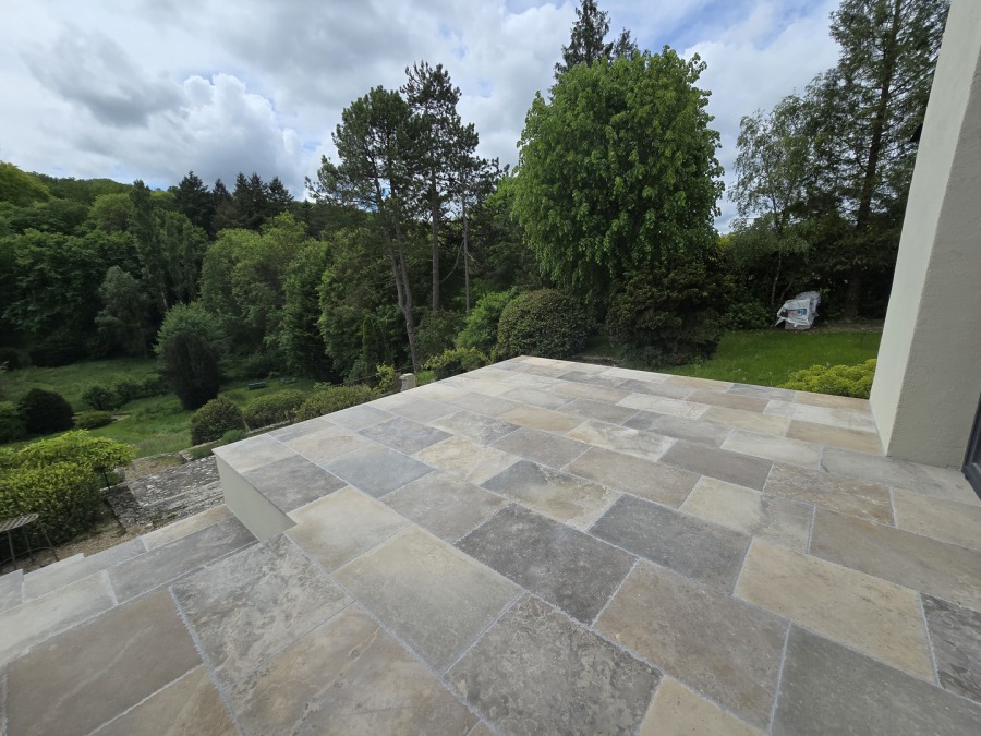 Chez Francepierre, la pierre de dordogne (Périgord B2 gris) se décline en ouvrages sur mesure : dallages intérieur/extérieur, margelles, pavés, parements, escaliers, plans de travail, éviers massifs, vasques, cheminées, tables, pieds de table, tombales, bar de Montpellier.