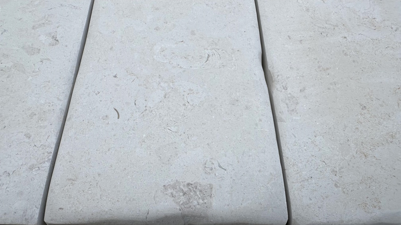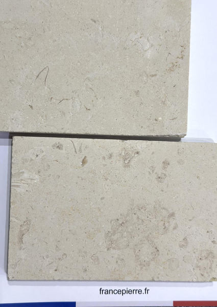 Blanc écru, ivoire, parsemé de petits coquillages, fossiles concassés lui donne une apparence fleurie, cette pierre marbrière prend le poli brillant comme un marbre. Très prisée pour l’intérieur sous forme de dallage, escalier, plan de travail, vasque, évier. Cette pierre du Périgord très lumineuse et unie est le top pour de magnifique dallage en damier ou avec cabochons.