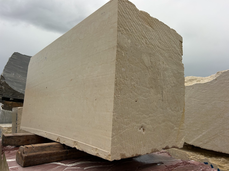 Texture homogène sans grain apparent, blanc écru, ivoire, Champagne, Perle avec par la présence d’éléments coquilliers totalement recristallisés (variété B5) à partiellement cristallisés (variété B3/B4)