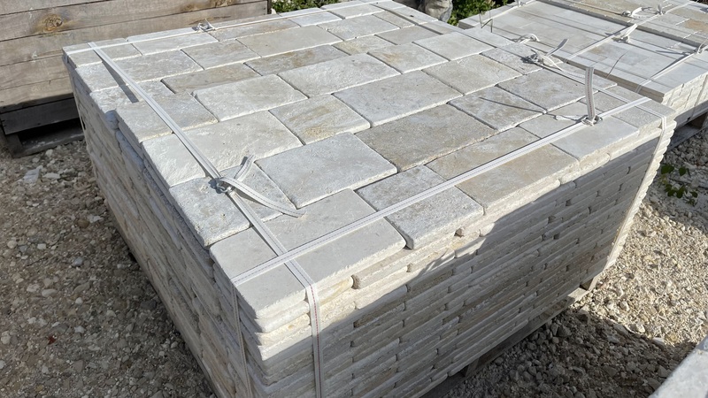 La pierre est travaillée, taillée, vieillie et expédiée depuis le territoire français.