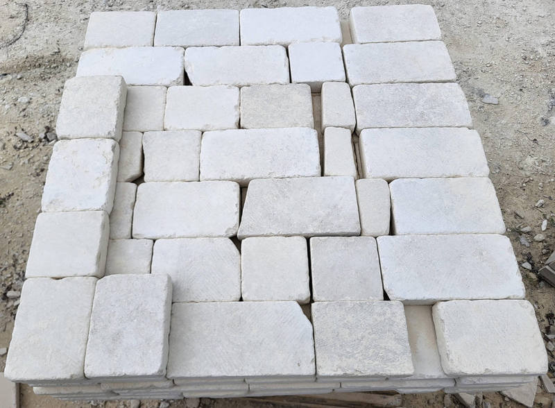 Le processus de vieillissement peut également inclure un passage au tambour, où les pavés s'entrechoquent avec des graviers sous l'effet de vibrations contrôlées. Cette méthode mécanique arrondit naturellement les angles et adoucit la surface, créant cette texture veloutée si recherchée .