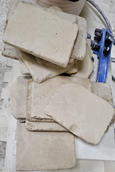 Ce procédé enlève les traits de scie liés à la découpe et ouvre la pierre, lui conférant ce rendu vieilli authentique qui fait tout son charme .