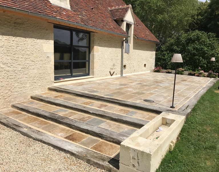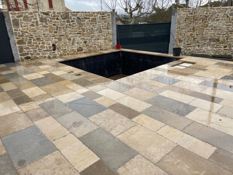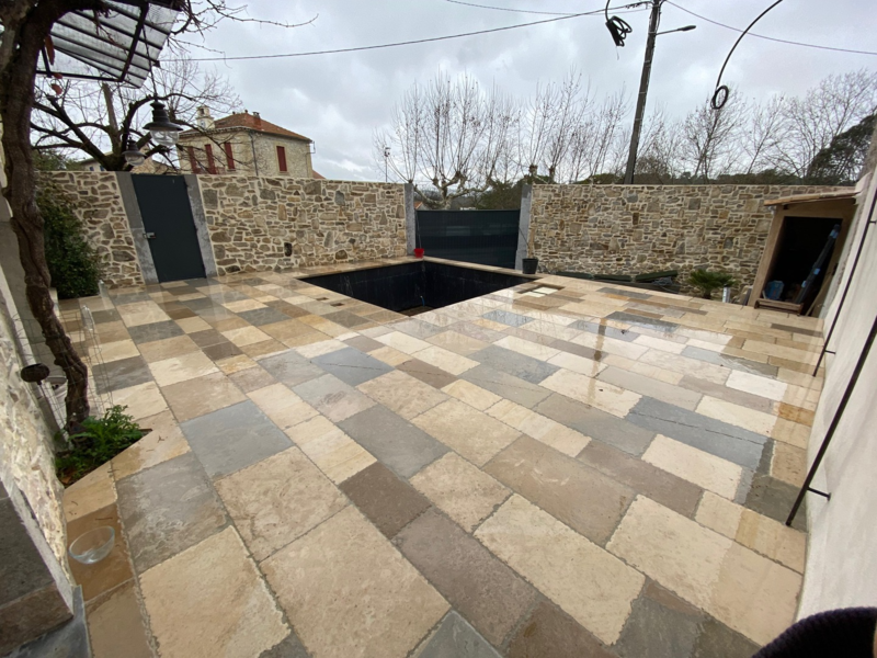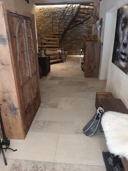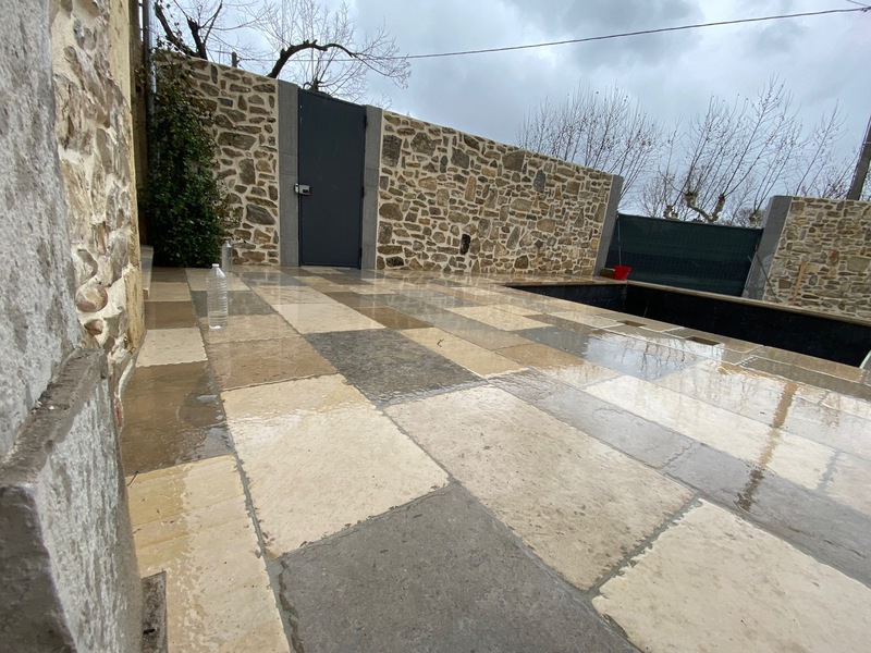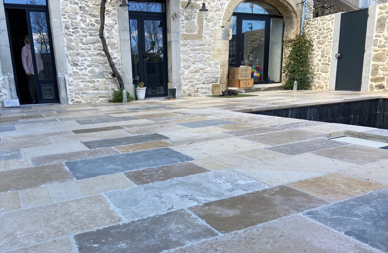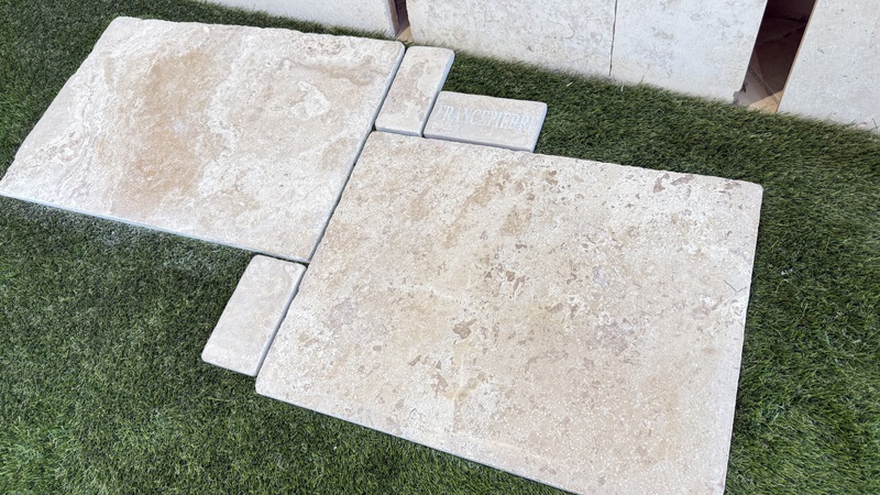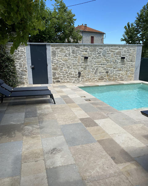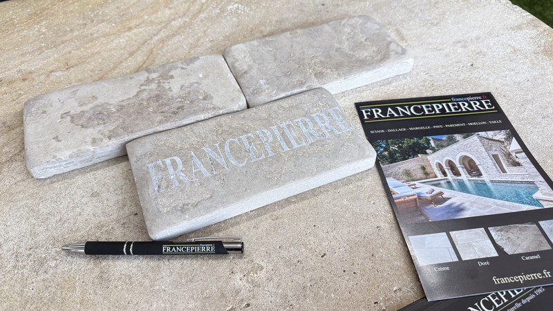 Chez Francepierre, la pierre du Périgord B2 (véritable pierre de dordogne) se prête à tous les usages : dallages int./ext., margelles, pavés, parements, escaliers, plans de travail, éviers massifs, vasques, cheminées, tables, pieds de table et tombales.