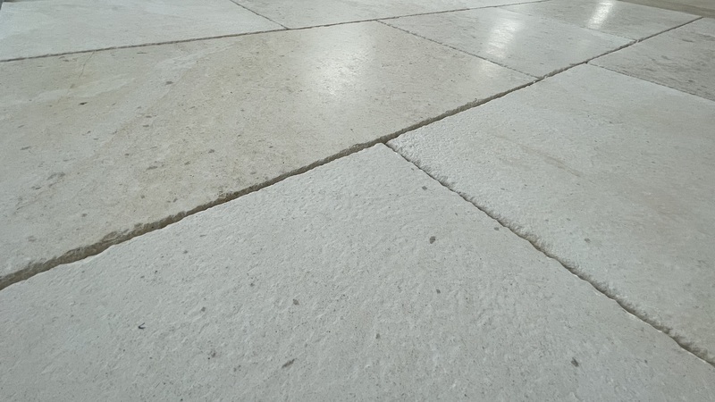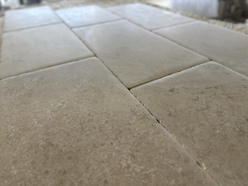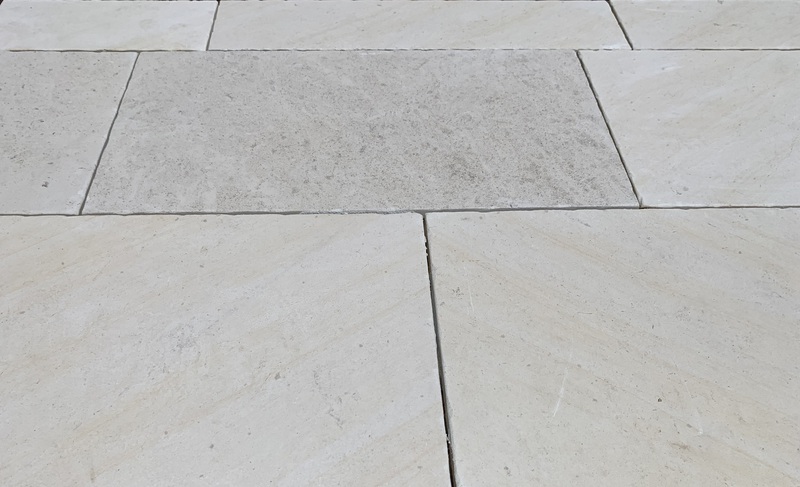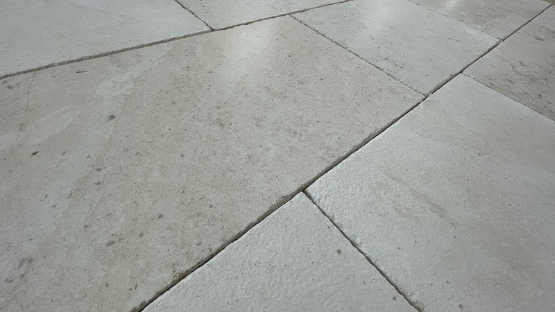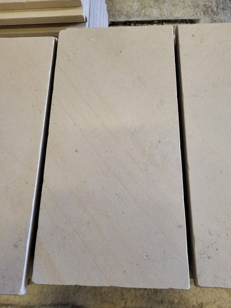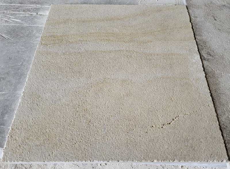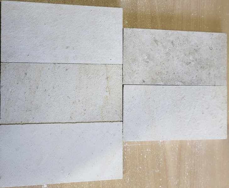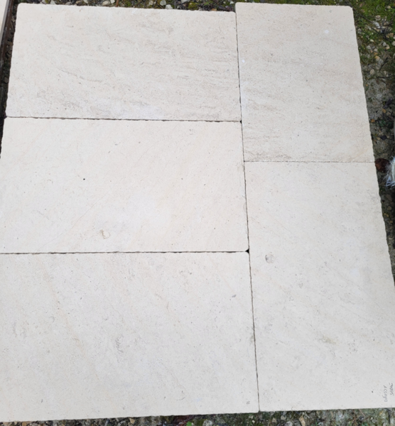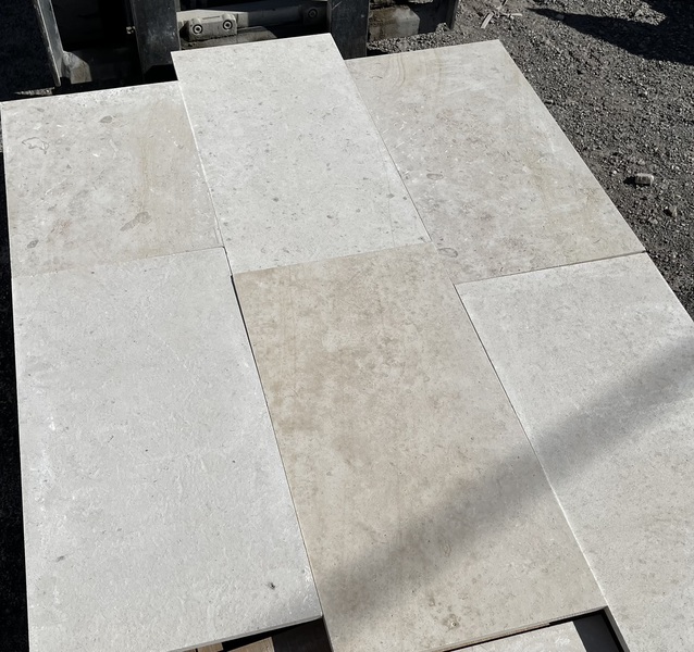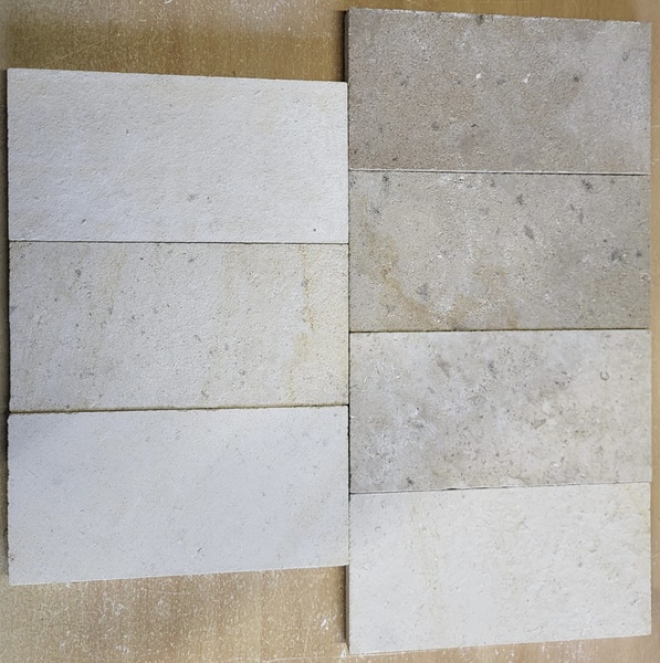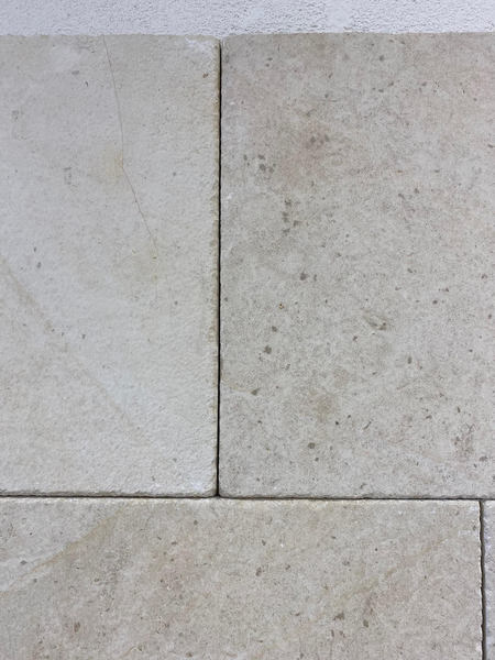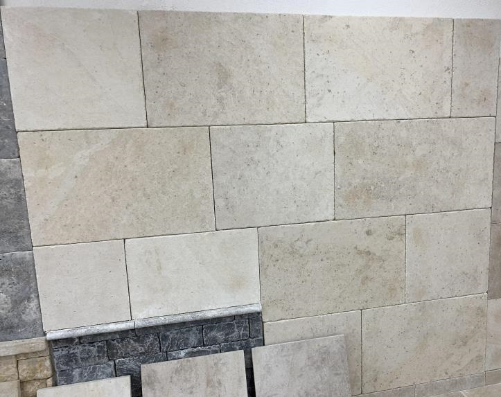 La pierre de Montagnac Crème Uni, finitions adoucie ou brossée ou vieillie main.