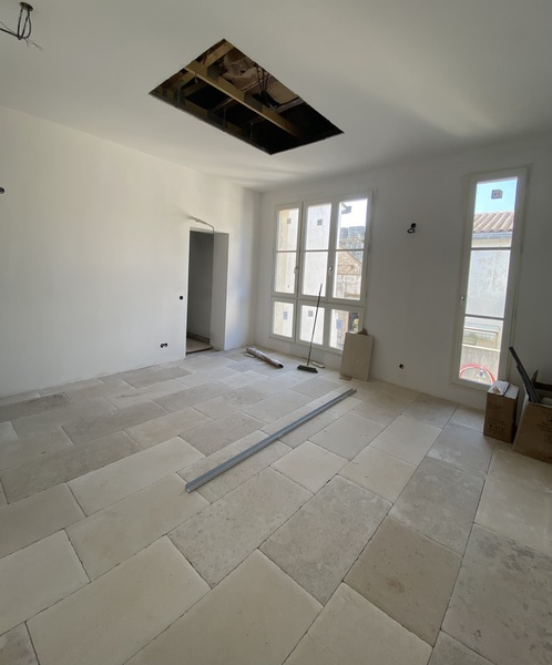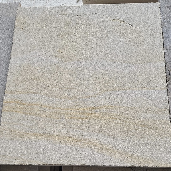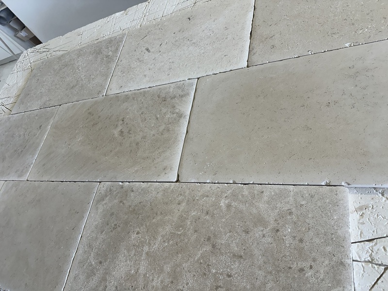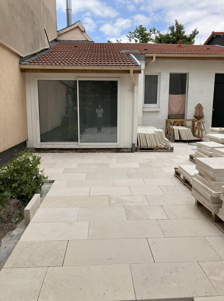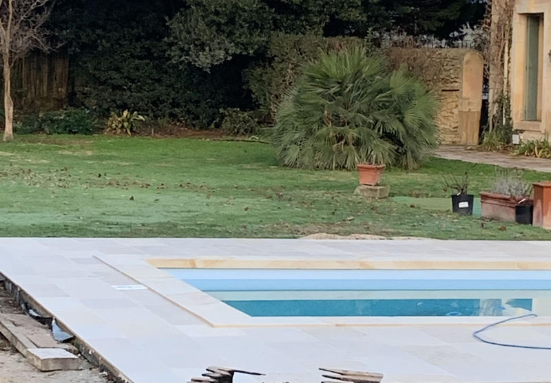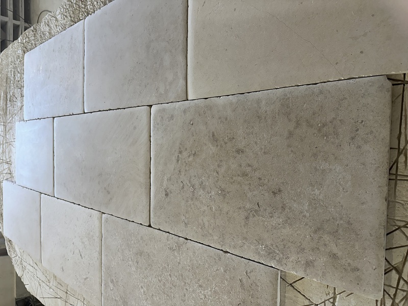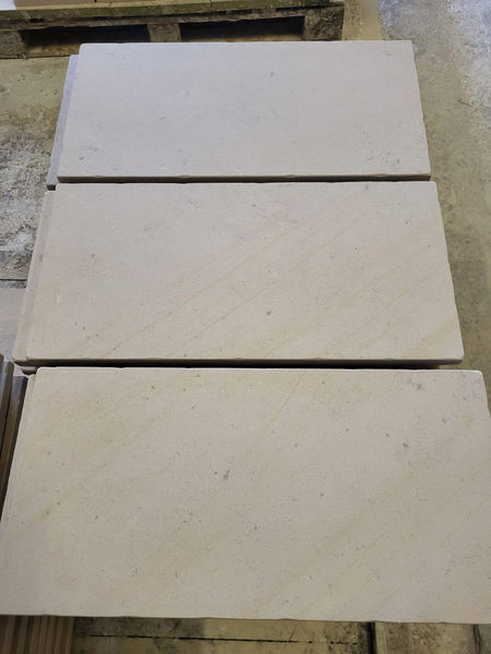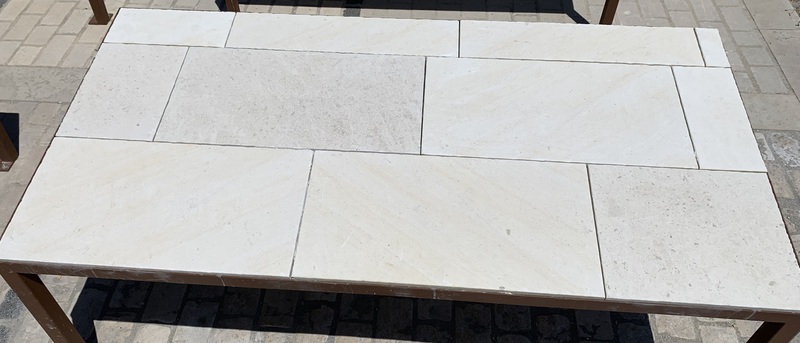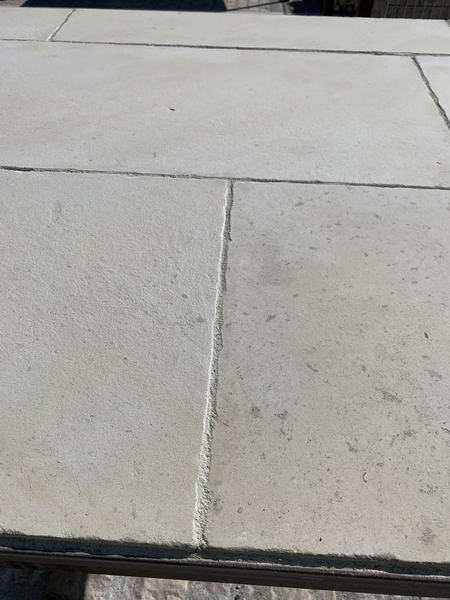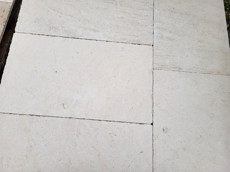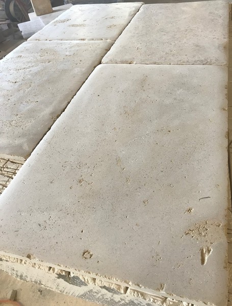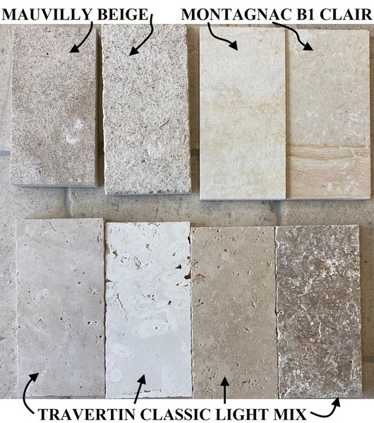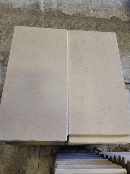 La pierre de Montagnac Crème Uni, finitions adoucie ou brossée ou vieillie main.