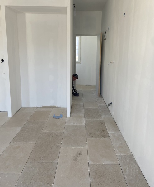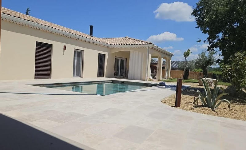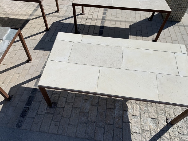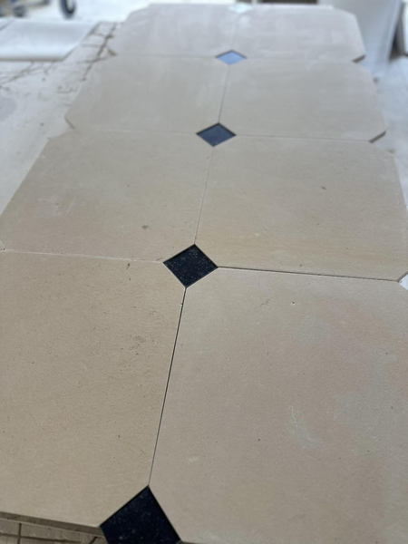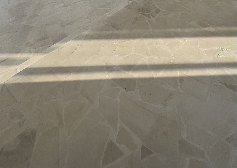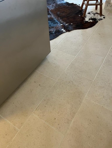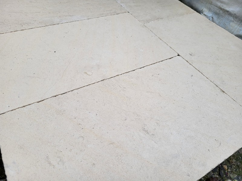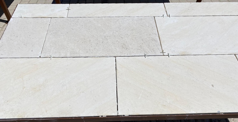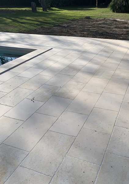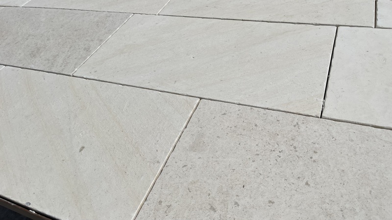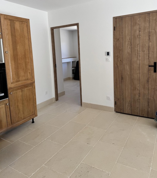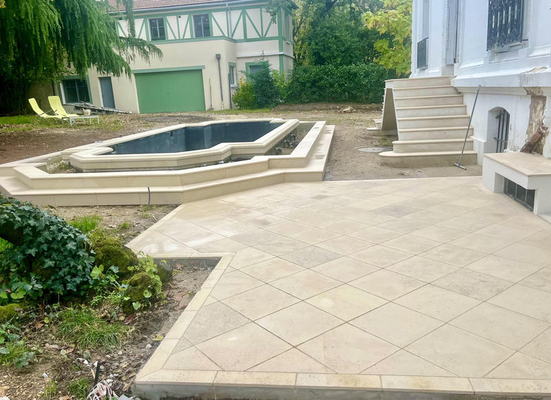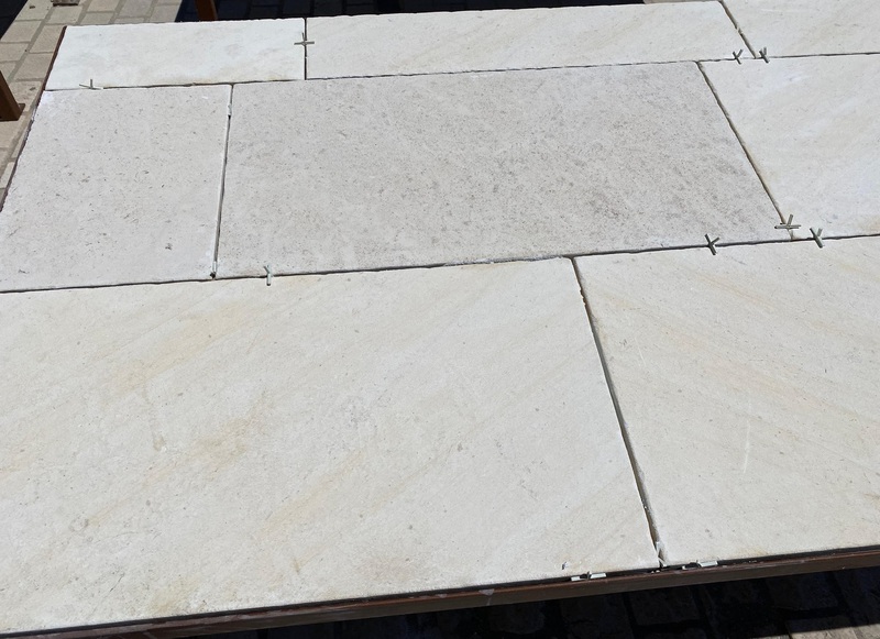 La pierre de Montagnac Crème Uni, finitions adoucie ou brossée ou vieillie main.