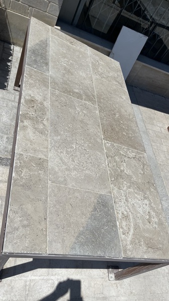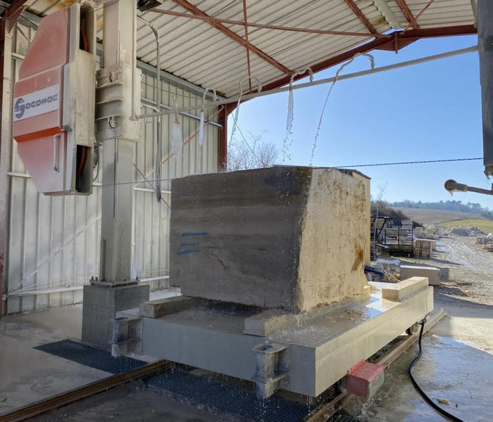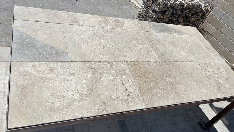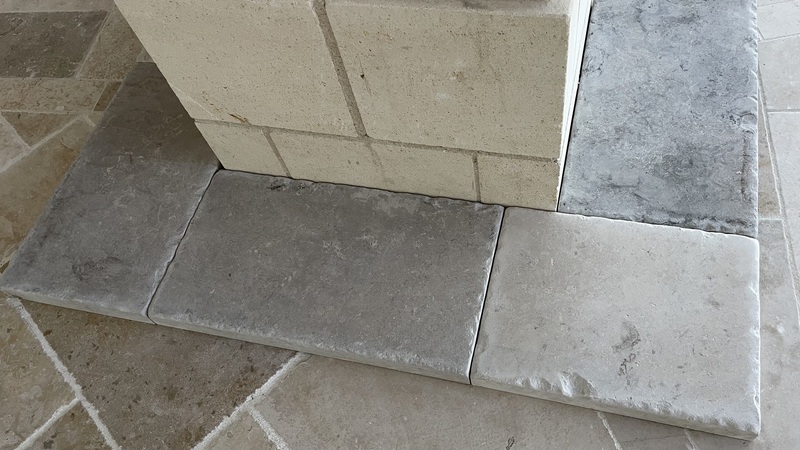 Chez Francepierre, la pierre de dordogne (Périgord B2 gris) se décline en ouvrages sur mesure : dallages intérieur/extérieur, margelles, pavés, parements, escaliers, plans de travail, éviers massifs, vasques, cheminées, tables, pieds de table, tombales, bar de Montpellier.
