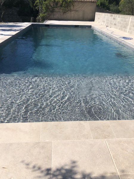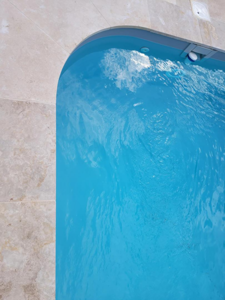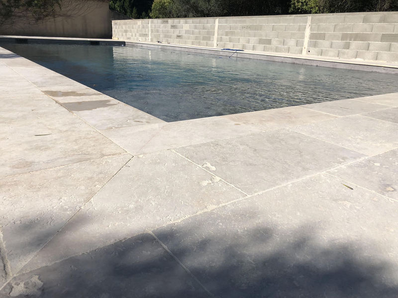 Nos margelles bénéficient naturellement des propriétés antidérapantes et de la robustesse de cette roche calcaire. Validées pour résister au gel sans sinistre (pose dans les règles de l’art), elles se déclinent en plusieurs formats pour s’harmoniser à nos dallages et créer un ensemble piscine à la fois élégant et durable.