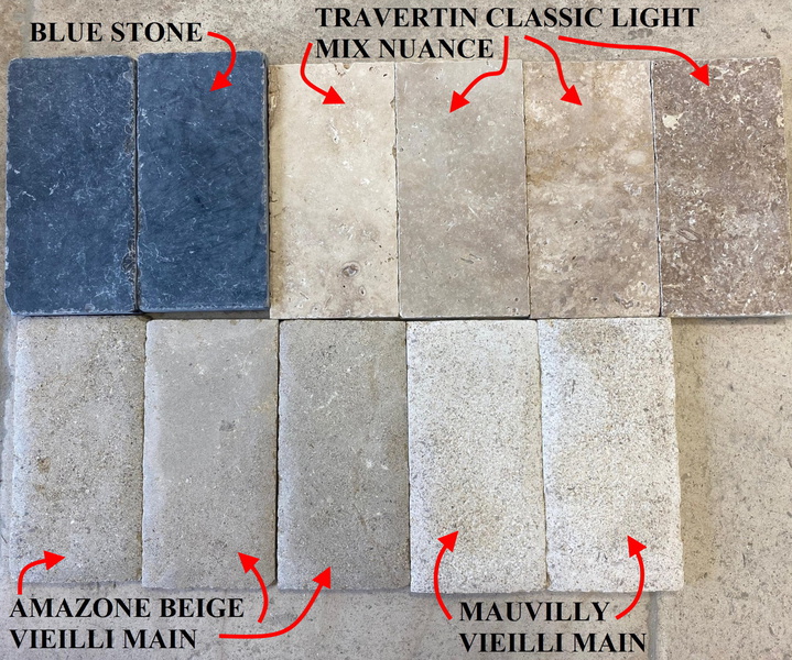 Vous trouverez également d'autres gammes de travertin comme le Scabo, le Standard ou l'Ivoire.